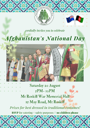 Afghanistan Independence Day - 20 August 2022. We celebrated Afghanistan’s Independence Day at the Mt Roskill War Memorial Hall with an evening of speeches, dance and music. Hon Phil Twyford, Associate Minister of Immigration, attended. We enjoyed delectable food and were pleased that so many of the community could be part of the celebration.