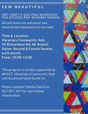 Women's Group: Focus on arts and crafts. Every Tuesday 6-8pm at Mangere East Community Centre, 372 Massey Road, Mangere East